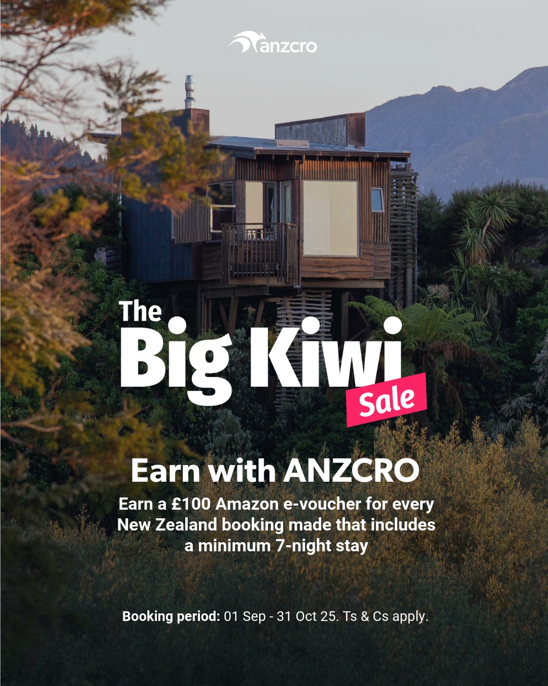 Agents will receive a £100 Amazon e-voucher for every New Zealand booking made that includes a minimum 7-night accommodation stay.