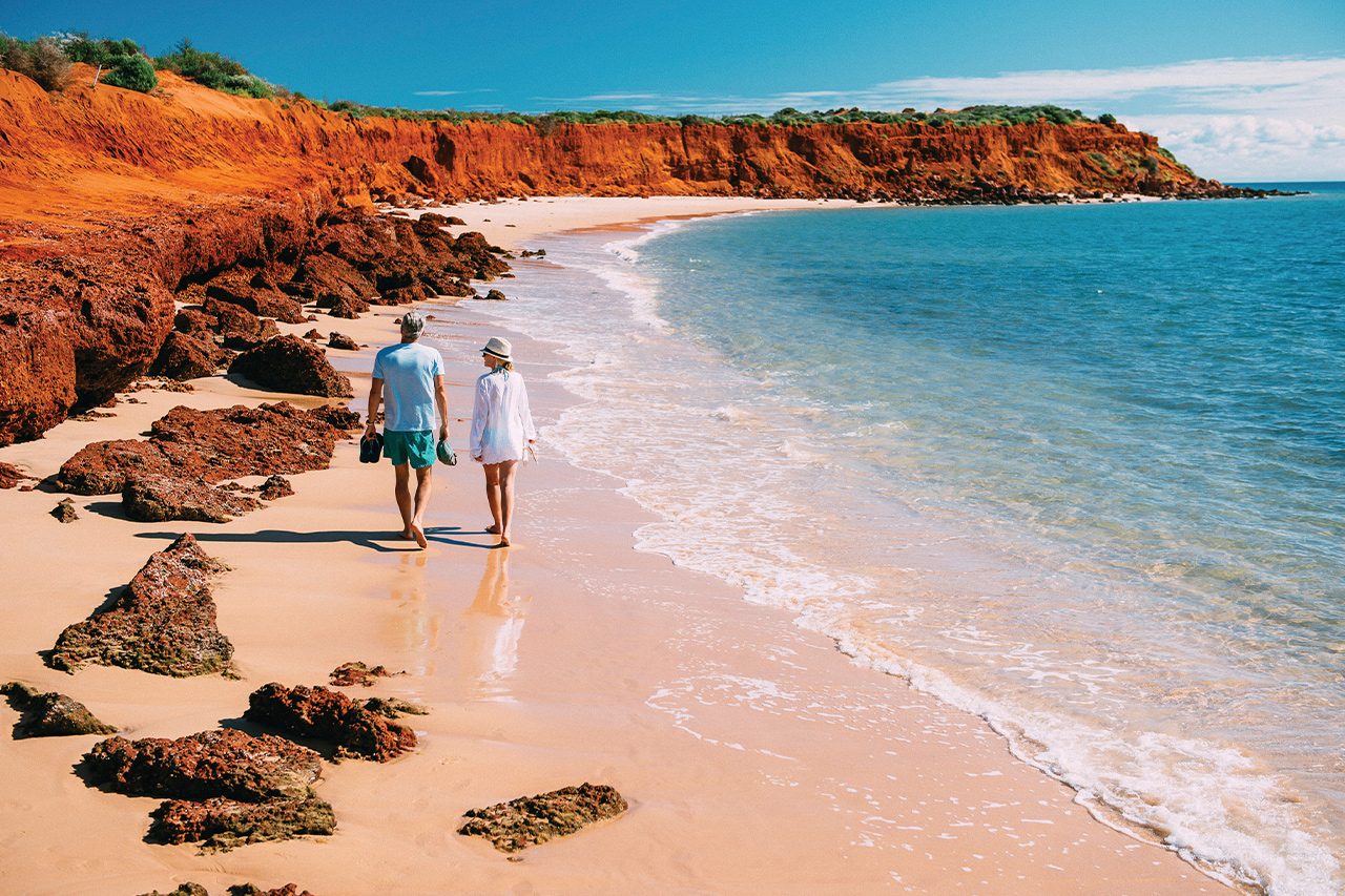 Australia’s Coral Coast Highway is one of the world’s most spectacular road trips, running from Perth (Boorloo) to Exmouth (Warnangoora) and connecting two UNESCO World Heritage-listed regions – Ningaloo Marine Park and Shark Bay. Along the way, discover the striking pink waters of Hutt Lagoon and the vibrant marine life of Ningaloo Reef (Nyinggulu). This 12-day West Coast Loop self-drive journey showcases the very best of Western Australia’s breathtaking Coral Coast.
