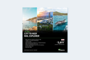 Begin your journey in a bustling city, where art, culture, and stunning views captivate. Then, take a scenic rail journey north, passing through spectacular landscapes to reach a laid-back coastal town. Explore tropical beaches, where palm-fringed shores and crystal-clear waters invite you to relax and unwind. Discover the region’s natural wonders, from lush rainforests and gorges to pristine islands, all while soaking up the tropical charm of this stunning Queensland escape.