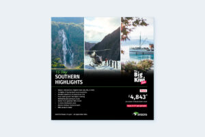 | Destinations | Akaroa, Arthurs Pass, Christchurch, Dunedin, Franz Josef, Invercargill, Milford Sound, Queenstown, Stewart Island, Te Anau |